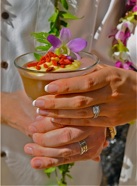 The Hawaiian Water Sharing Ritual is a meaningful and charming addition to any ceremony. This sharing is based on the idea that Love is the Water of Life. Ceremonial table with fresh flowers and coconut cups for the sharing are provided. No extra charge.